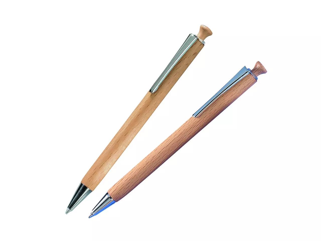 Stylos à bille en bois certifié FSC®, de grande qualité, à longue durée de vie, rechargeables. Le bois de hêtre utilisé provient de forêts Européennes à gestion durable, la certification est effectuée par un organisme indépendant : le Forest Stewardship Council.