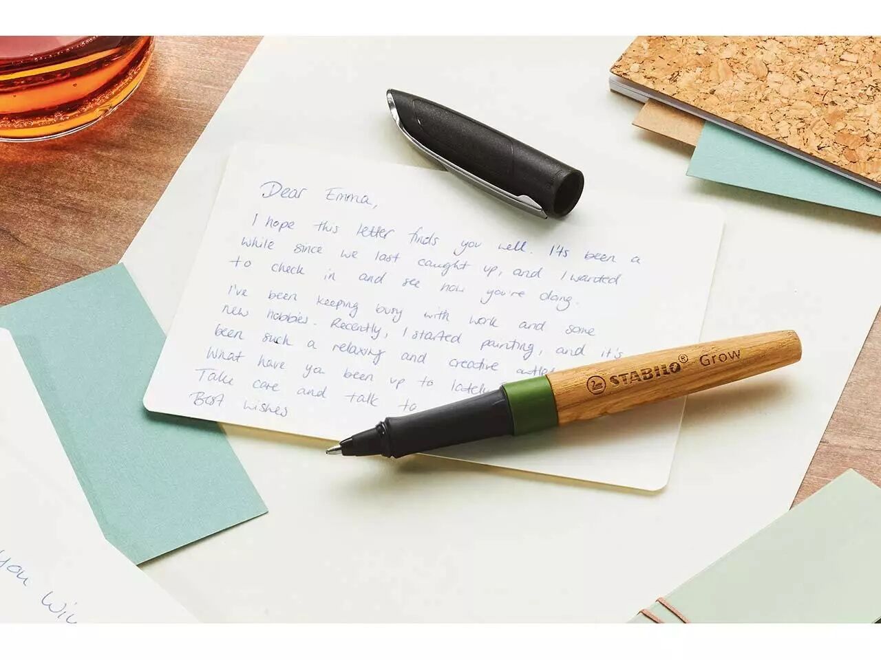 Ce stylo-bille allie confort d'écriture, design et qualités environnementales ! Son corps en chêne FSC et sa bague vert mousse rappellent la nature. Son bois est issu d'une exploitation forestière exemplaire. Les autres composants sont en grande partie constitués de déchets provenant des industries alimentaires et papetières ainsi que de matières premières renouvelables, notamment pour la zone de préhension ergonomique. Des enveloppes de graines de tournesol - en tant que fibres naturelles - sont additionnées au plastique pour fabriquer le capuchon. Le stylo-bille tient parfaitement dans la main et offre une expérience d'écriture agréable. Il est bien sûr rechargeable, pour vous offrir de longues années de plaisir d'écriture (avec les recharges STABILO Pointball).