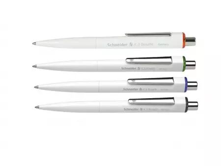 Avec son look minimaliste, le «K3» de Schneider est constitué d'un corps en PLA (Acide polylactique, polymère à base d'amidon de maïs ou sucre) issu de plantes sourcées en Europe. L'agrafe, le bouton poussoir et la pointe sont en acier spécial particulièrement solide et conçus pour une longue utilisation. Avec recharge grande capacité haut de gamme, type Schneider SLider 755 XB. L'anneau de couleur est de la couleur de l'encre.