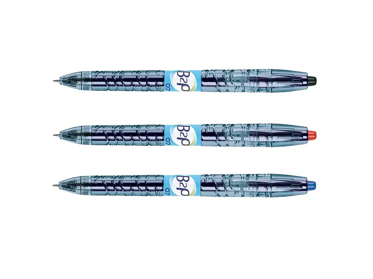 Roller gel recyclé Pilot «Begreen» B2P, un stylo dont le corps transparent provient à 89 % du recyclage des bouteilles d'eau en PET.