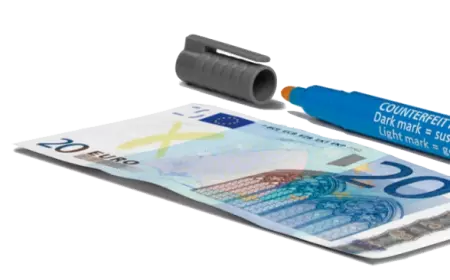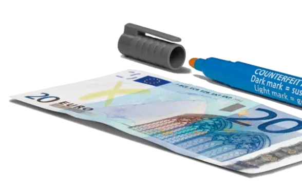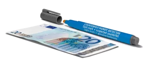 Ce stylo permet de vérifier directement l'authenticité d'un billet de banque. Si la marque tracée sur le billet se colore, il est faux. Par contre, si la marque s'estompe et disparaît, le billet est un vrai. Comme il fonctionne sans électricité et est tout petit, il est idéal pour les métiers à l'extérieur (chauffeur de taxi, de bus, festival en plein air, etc.), ou en caisse en magasin (où on n'a pas toujours beaucoup de place, et de temps !). Autorise jusqu'à 10.000 marquages (4 ml d'encre).