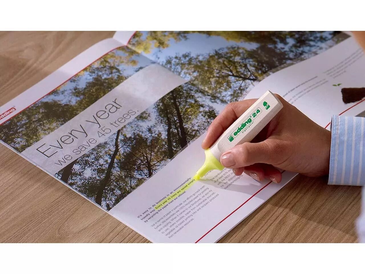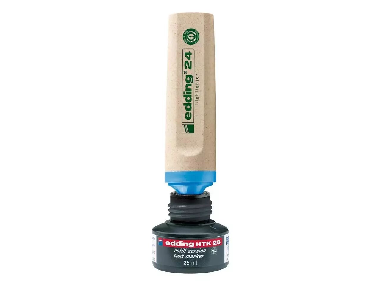 Surligneur rechargeable innovant dont le corps est fabriqué avec un minimum de 70 % de matière première renouvelable ; la tête se composant d'au moins 97 % de matière recyclée. Les encres néon brillantes sont à base d'eau. Il bénéficie à présent du label écologique Ange Bleu.