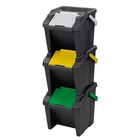 Système de tri des déchets "Tower" – Lot de 3 poubelles empilables en plastique recyclé