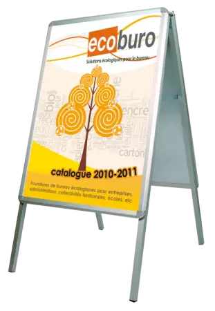 Panneau publicitaire double face pour affiche format A1 - très stable et résistant aux intempéries, grâce au système de perforation qui draine l'eau.
