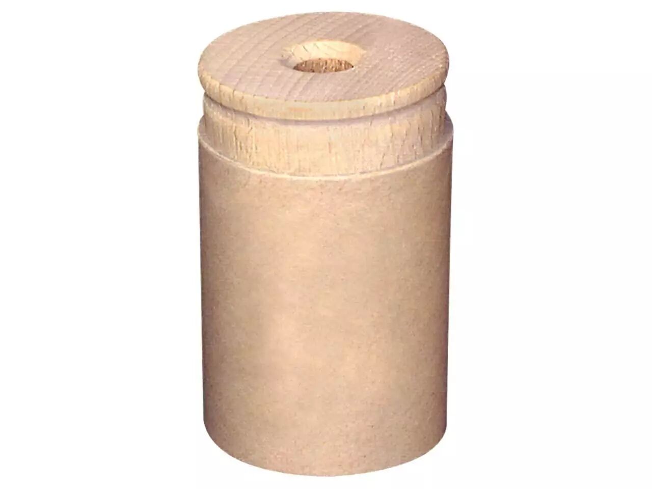 Taille-crayon bois réservoir carton recyclé, 1 trou, couvercle hêtre naturel, pour crayons jusqu'à 8 mm diam. Ce taille-crayon manuel est très écologique car fabriqué avec des matières renouvelables.