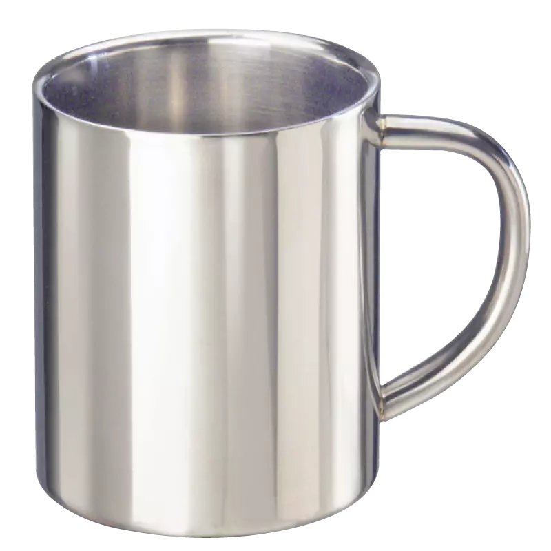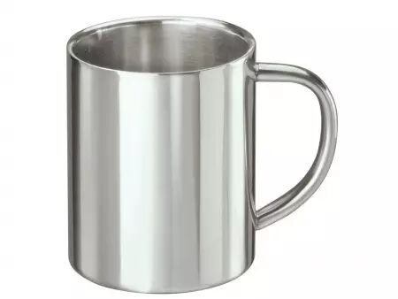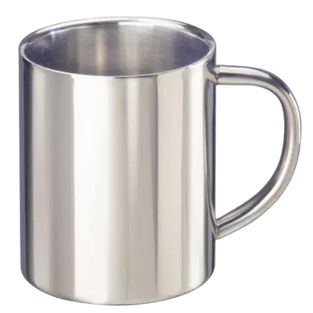 Tasse à café isotherme, en acier inox. Hauteur : 9 cm. Diam. : 8 cm. Contenance : 0,3 l. Fabriqué en Chine.