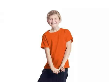 Tee-shirt en coton bio, de coupe droite classique à col rond, pour garçons et filles. En jersey de haute qualité, épaisseur 155 g/m², agréablement doux. Confection tout en coton issu de l'agriculture biologique, le label Commerce Équitable vient compléter ses vertues. Le tee-shirt répond également aux critères GOTS.