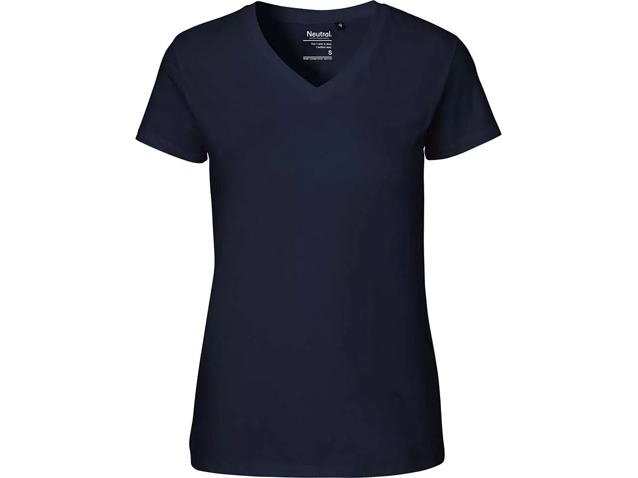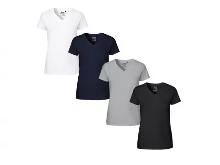 Tee-shirt de haute qualité avec petit col en V, encolure indéformable, dans une coupe ajustée légèrement cintrée. Fabriqué à 100% à base de coton issu de l'agriculture biologique, grammage 155 g / m², avec les critères du commerce équitable. La fabrication respectes les critères GOTS.