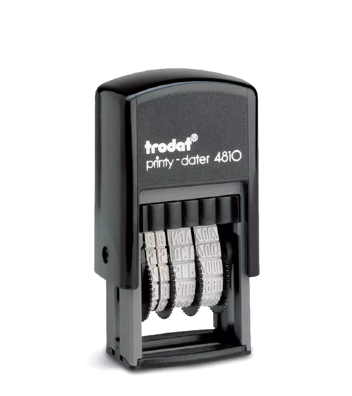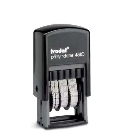 Timbre automatique dateur français Printy Dater 4810 à encrage automatique grâce à son tampon encreur (ré-encrable). Hauteur des caractères: 3,8 mm, réglage de la date facile et propre, boîtier de couleur noire. Dimensions: L41 x P24 mm x H76 mm, dimensions d'empreinte 3,8 x 20 mm.