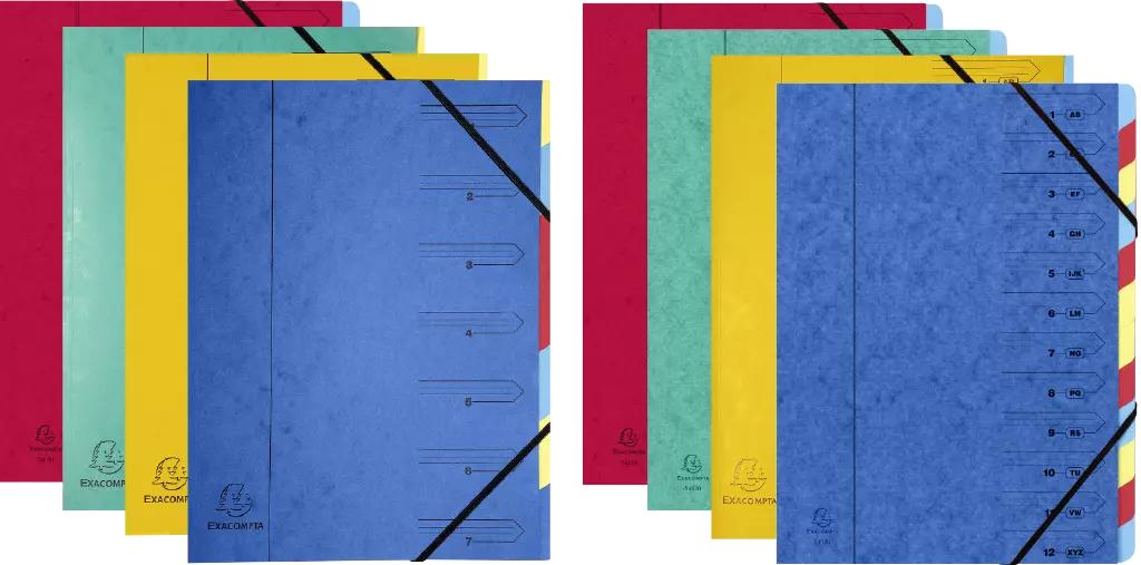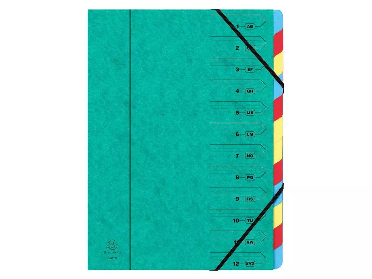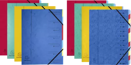 Pour ranger et transporter en toute sécurité des documents de format A4 : trieur relié en solide carton de 400 g/m². Avec 7 ou 12 onglets, fermeture par élastique. Pochettes colorées pour bien s’y retrouver. Carton solide de 400 g/m², composé à l'extérieur d'une couche de carton certifé FSC©, et à l'intérieur d'une couche de carton recyclé. 7 ou 12 onglets.