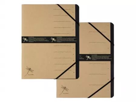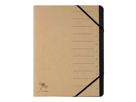 La couverture est imprimée avec le nombre d'onglets 1 à 7 ou 1 à 12 ainsi qu'une libellule. La couverture peut également être personnalisée au stylo afin d'indiquer le contenu des différents onglets.