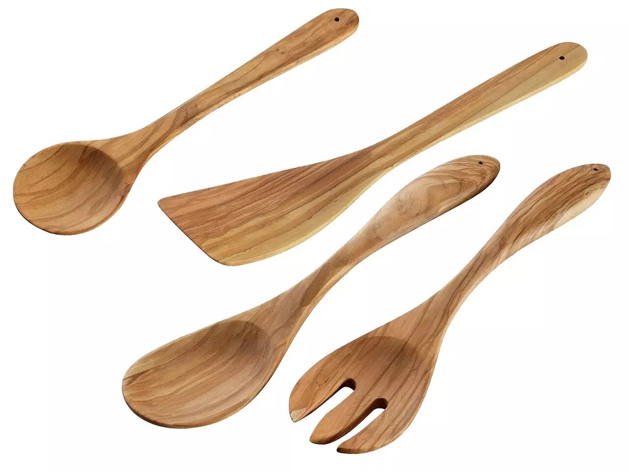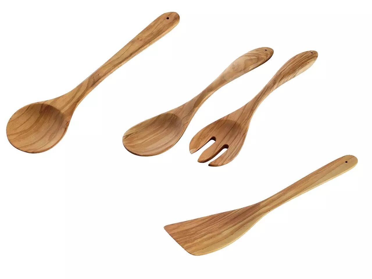 Les ustensiles «TOSCANA» de fabrication artisanale donnent tout de suite à votre cuisine une touche méditérranéenne grâce à son bois d'olivier, au veinage caractéristique. La surface en bois est traitée à l'huile de tournesol. Comme le bois d'olivier est très dense et a des pores étroits, il n'absorbe pas les odeurs, ne raye pas les revêtements antiadhésifs et supporte les acides, les graisses chaudes et le liquide vaisselle. Le bois provient d'arbres qui ont jusqu'à 500 ans et ne portent plus de fruits.
