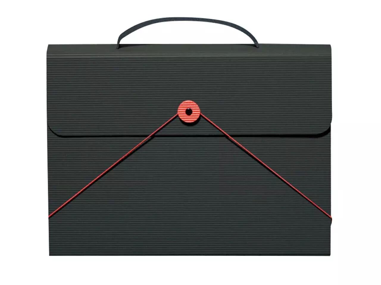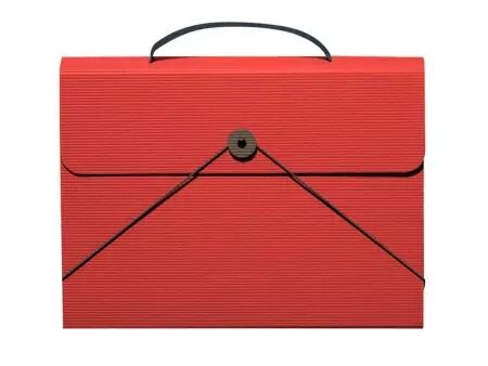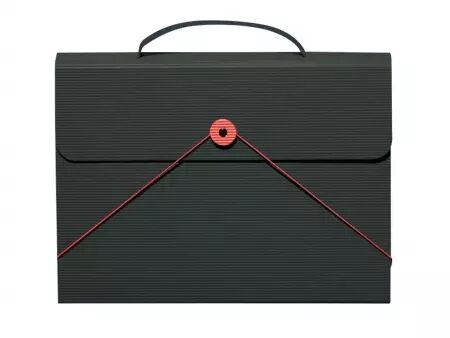 Cette valisette est idéale pour ranger jusqu'à 3,5 cm de documents A4, et la transporter aisément grâce à sa poignée en cuir recyclé. En solide carton recyclé de 1,2 mm, fermeture par élastique autour d'un bouton de couleur contrastée. Fabriquée en Europe, label écologique Ange Bleu. Dimensions L24 x P32 cm.