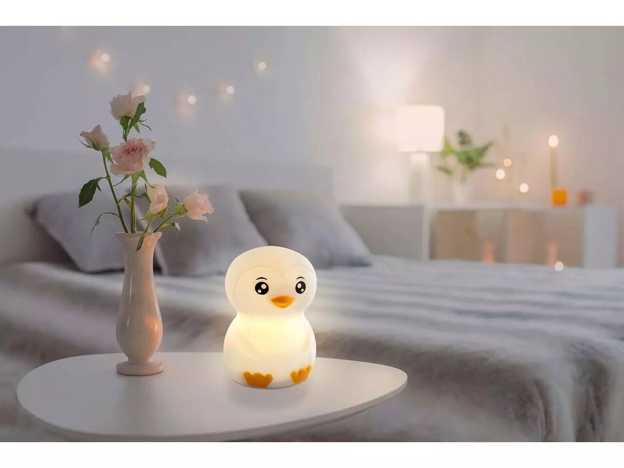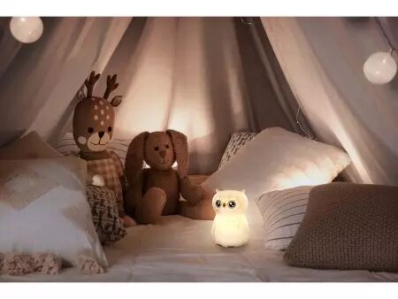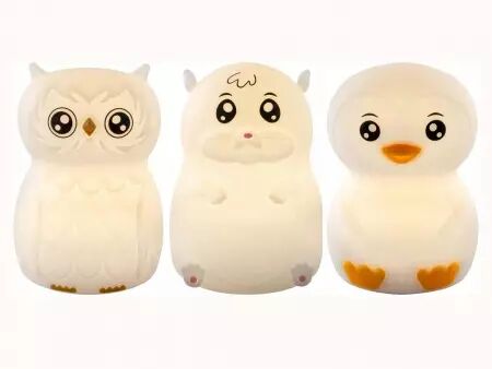 Cette veilleuse nomade en silicone tiendra compagnie aux jeunes enfants pour les aider à s'endormir en douceur. Elle fournit un éclairage agréable et doux. Cette lampe fonctionne grâce à une batterie rechargeable, elle pourra donc être emportée pour les vacances afin de recréer l'environnement familier et rassurant. Grâce à la technologie LED, la consommation d'énergie est faible et la lampe n'émet pas de chaleur même après une utilisation prolongée. La fonction d'arrêt automatique éteint automatiquement la lumière au bout de 60 minutes. Différentes couleurs de lumière peuvent être sélectionnées et l'intensité est variable. Trois formes au choix : hibou, chouette ou pingouin. L 9,2 x l 9,9 x H 13,7 cm.